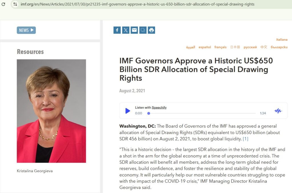 The IMF recognised that lower-income countries, who also had a liquidity crisis, could not do this so the IMF decided to act like a central bank for the world and issue $650 billion in Special Drawing Rights (SDRs) to help.