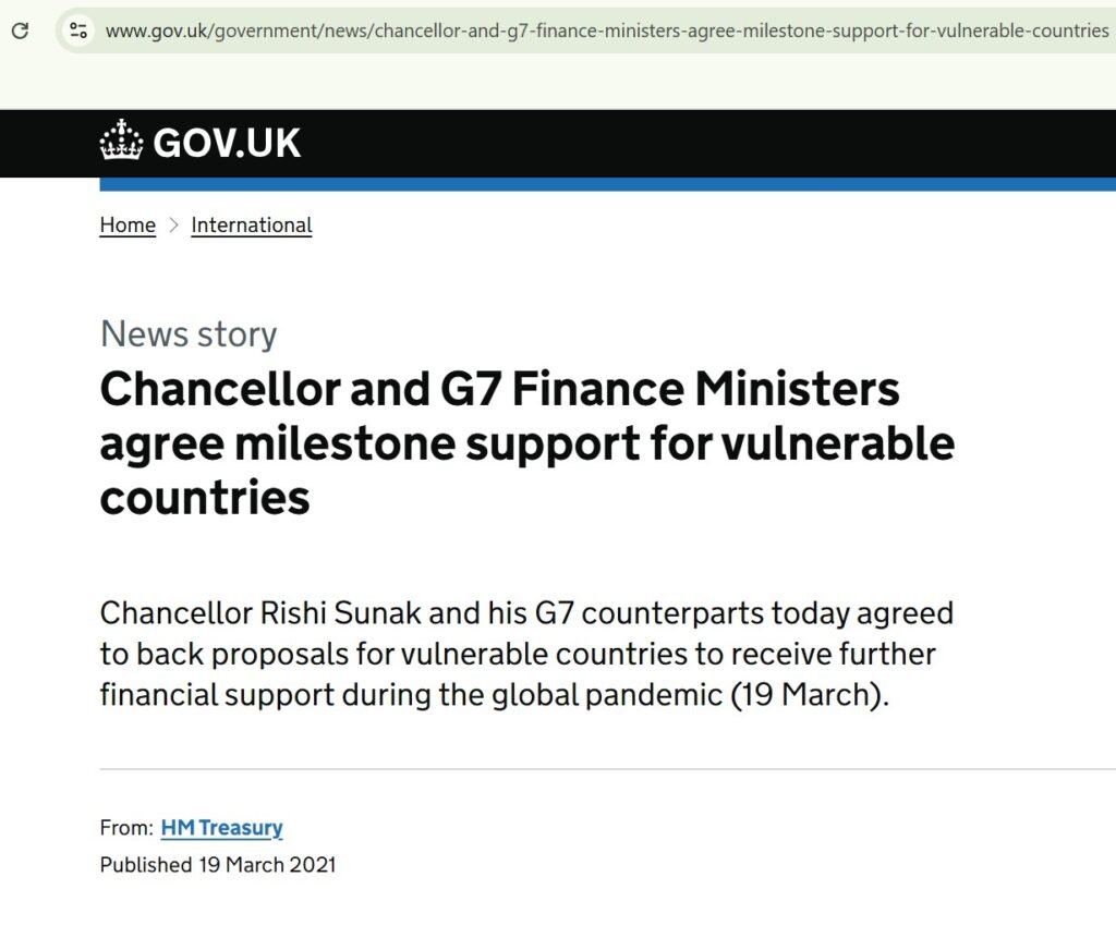17. HM Treasury, UK Government, ‘Chancellor and G7 Finance Ministers agree milestone support for vulnerable countries’ (19 March 2021) – Read more here (accessed 24 October 2022)