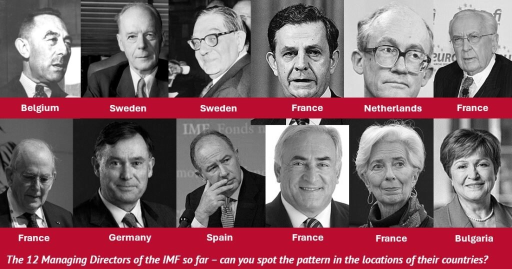 This is unjust and affects how and for whom the IMF is run. For example, in 78 years the Managing Director of the IMF has always been selected by European countries (as part of the West’s ‘gentleman’s agreement’ [2] where the US selects the World Bank President [3]).